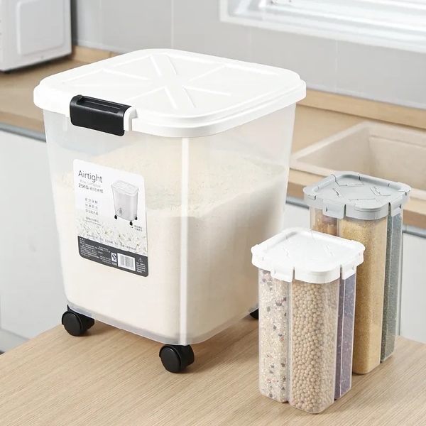 Wholesale of 8 Pcs Kitchen Sealed Rice Storage Jar and 8 Pcs Wheeled Food Storage Box.