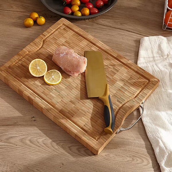 Detail for 5 Pcs Thick Bottom Textured Bamboo Cutting Board with Metal Handle:
