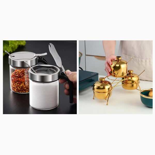 Detail for 5 Sets 304 Stainless Steel Seasoning Storage Jar Container: